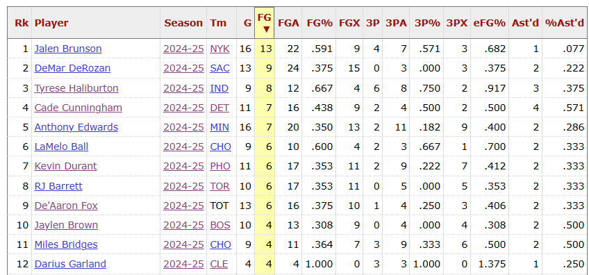 Por detrás, Nikola Jokic es cuarto en puntos, récord positivo, 55/46/75 en tiros de campo además del tercer jugador con más rebotes y segundo en asistencias (por delante de Brunson). De Garland, me quedo con su +91 en el clutch y el 23-8 de récord que Cleveland tiene. 18/4 AST-TOV ratio y con 56% en el triple. He descartado a Edwards y Trae por el récord negativo, Maxey por jugar pocos partidos y me quedaría Kevin Durant como alternativa sana. No me molesta si se cuela en el podio.