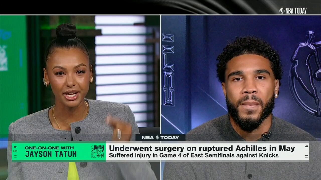 Jayson Tatum ha hecho un pequeño tour de prensa este martes 23 de septiembre, a días del Media Day de los Celtics que será este jueves. El alero de los Celtics se ha pasado por medios como la revista People, el programa Jenna and Friends de NBC, por el Boston Globe o ESPN, donde ha estado con Malika Andrews y con Stephen A. Smith en ESPN (y que no sorprenda que aparezca alguna entrevista más en las próximas horas). Ha sido una de las primeras veces que le hemos podido oír hablar de su lesión, de su recuperación y de las sensaciones tras un verano trágico en la ciudad de Boston. Y sí, ha dicho muchas cosas, pero queremos lo importante y se lo han preguntado. ¿Cuándo vas a volver?
