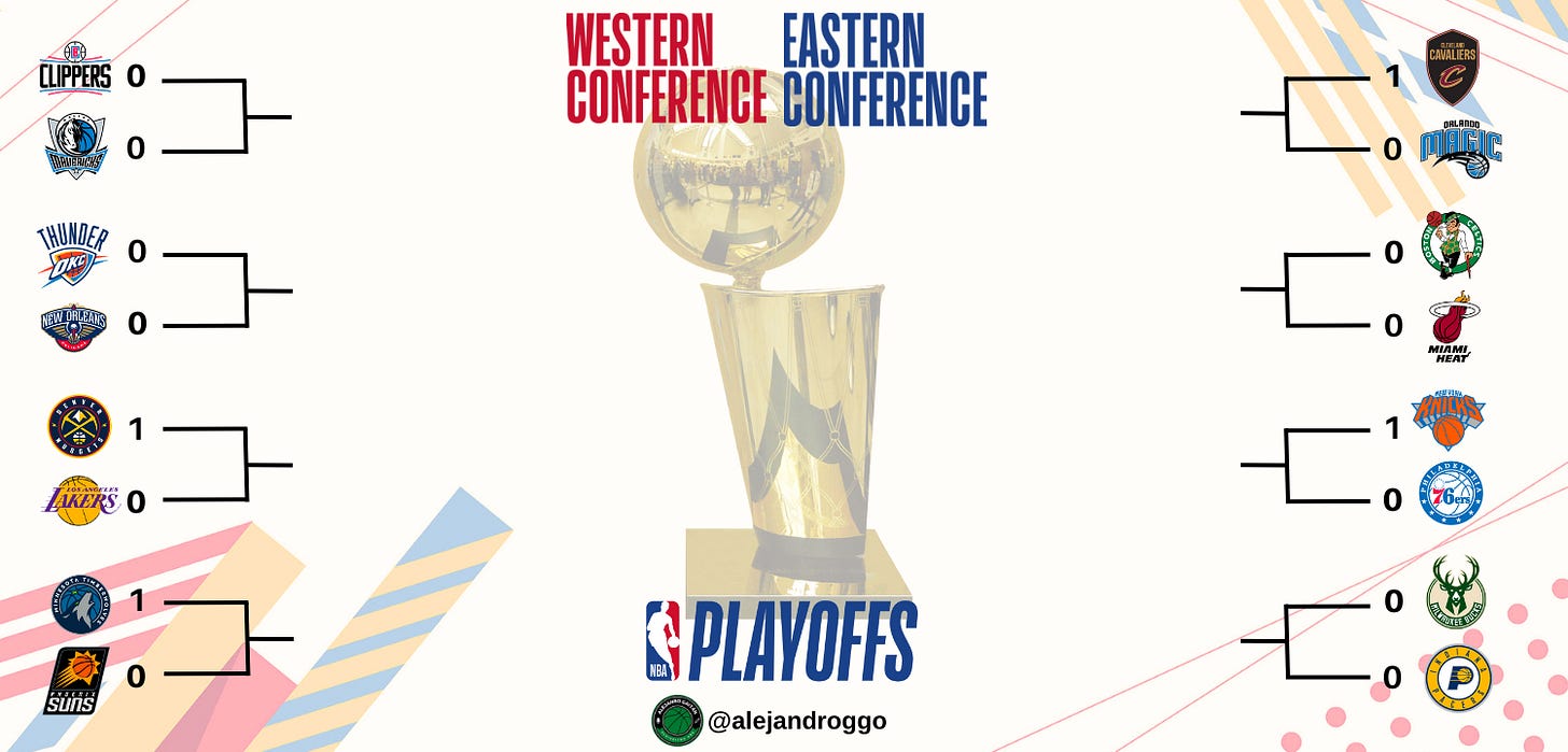 Los playoffs de la NBA ya han empezado. Cuando escribo estas líneas, los Cavaliers ya están 1-0 ante Orlando, cuyo ataque no se presentó al primer partido, y los Wolves están ganando a los Suns a mitad del segundo cuarto. Y es momento de hablar de las ocho series de primera ronda, cuatro por conferencia. Podría hacer una previa, pero