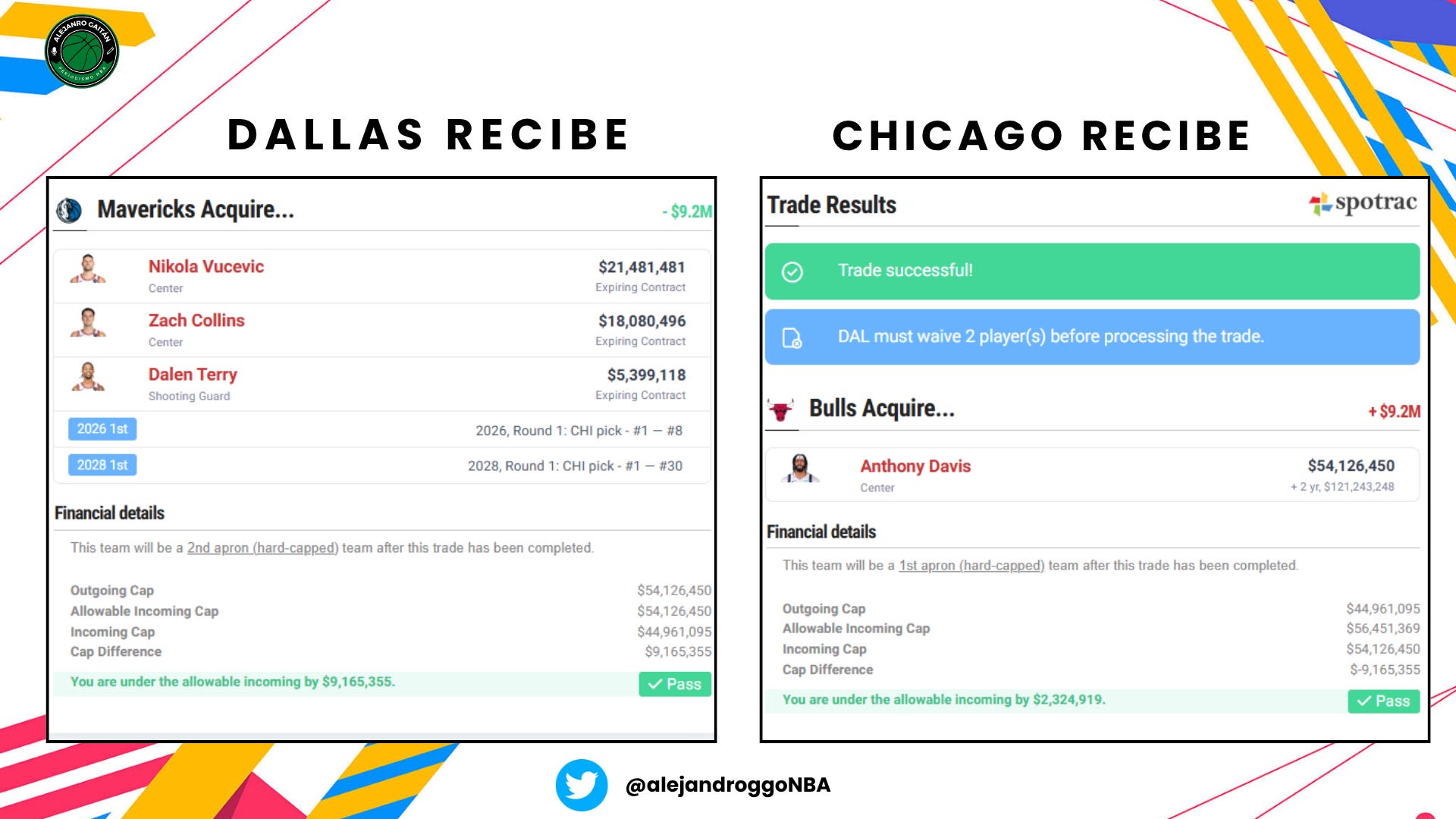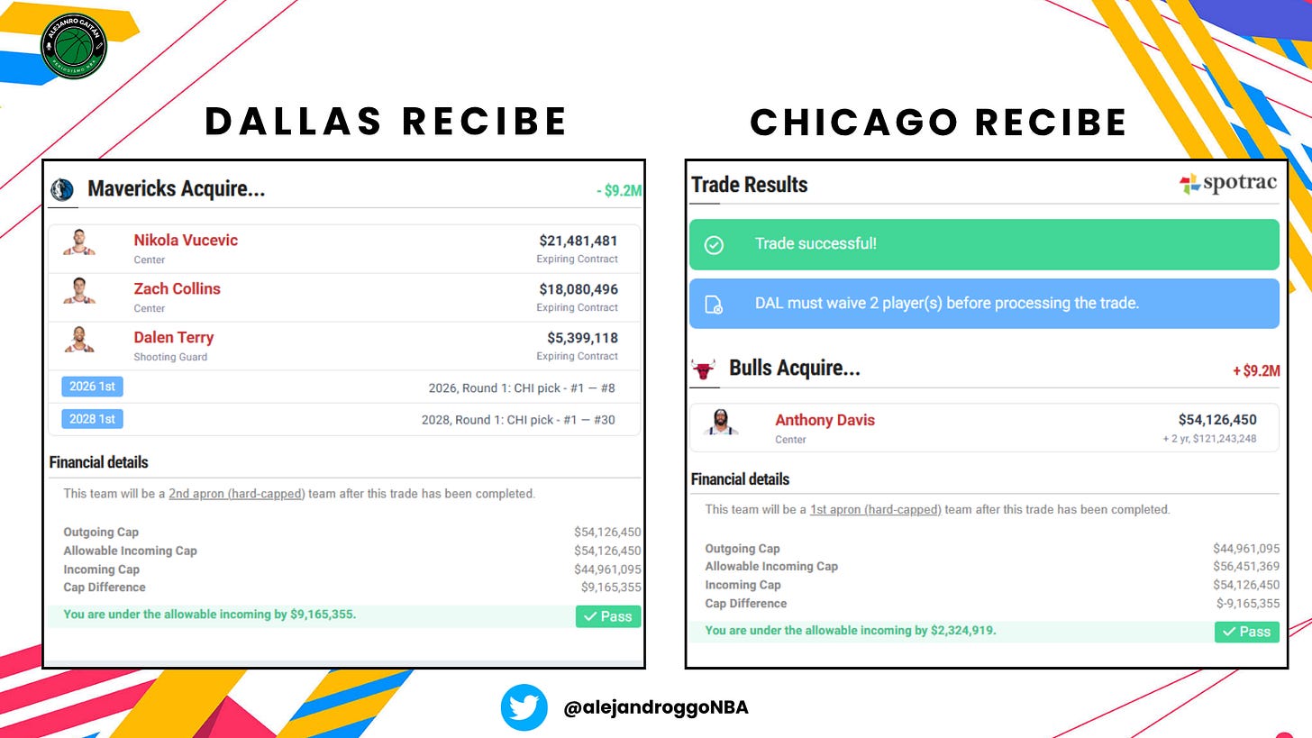 Anthony Davis x Nikola Vucevic, Zach Collins, Dalen Terry, la primera ronda de 2026 (del #1-8 solo) y la primera ronda de 2028.