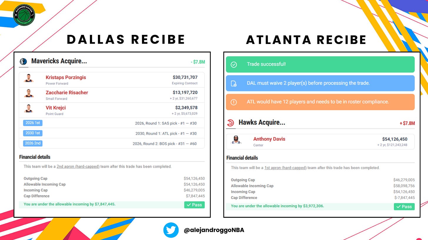 Anthony Davis y Dante Exum x Kristaps Porzingis, Zaccharie Risacher, Vit Krejci, la primera ronda de 2026 (vía SAS), la primera ronda de 2030 y la segunda ronda de 2026 (vía BOS).