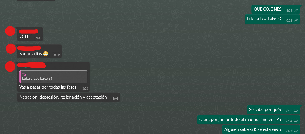 Cogí mi teléfono, con calma, y miré las notificaciones. 14 en Twitter, donde solo tengo activados a Shams, Stein, Haynes y Windhorst. 180 mensajes en un grupo de what’s app. Y ahí sí que empiezo a procesar todo.